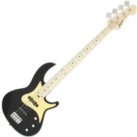 Gitara basowa 4 -strunowa Aria Pro II RSB-618/4 Korpus: lipa. Gryf: klon (Maple 3P). Łączenie gryfu z korpusem: Bolt-on – wkręcany. Podstrunnica: klon. Ilość progów: 24F. Skala instrumentu: 864 mm. Przetworniki: single coil - OJ-1 x 2. Potencjometry: Controls: Volume, Balancer, Treble.. Mostek: VFB-1C. Płytka ochronna: złota - Gold Anodized. Osprzęt: chromowany. Kolor: czarny – BK.