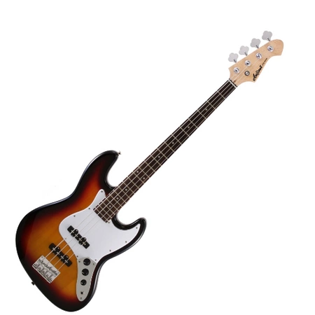Gitara basowa 4 -strunowa Aria Pro II - STB-JB. Korpus: lipa. Gryf: klon. Łączenie gryfu z korpusem: Bolt-on – wkręcany. Podstrunnica: palisander. Ilość progów: 24. Skala instrumentu: 864 mm (34’’ inches). Przetworniki: single coil - OJ-1 x 2. Potencjometry: Controls: Volume x 2, Tone x 1. Mostek: VFB-1. Płytka ochronna: kolorze białym. Osprzęt: chromowany. Kolor: 3TS (3Tone Sunburst).
