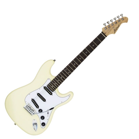 Gitara elektryczna sześciostrunowa Aria Pro II STG-003SPL. Korpus: Lipa. Gryf: klon. Typ łączenia z korpusem: wkręcany - Bolt-on. Podstrunnica: palisander. Ilość progów: 22. Skala instrumentu: 648mm (25-1/2 inches). Pickupy w układzie SSS: OS-1 Single Coil x3. Potencjometry: Volume x 1, Tone x 2, PU Selector, Switch x 1. Obudowa przetwornika w kolorze czarnym. Płytka maskująca: biała. 5-pozycyjny przełącznik przetworników: PU selector SW. Mostek ruchomy: VFT-1 Tremolo. Osprzęt chromowany. Kolor: biały - VW (Vintage White).