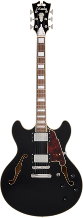 Zaokrąglony, podwójnie wycięty semi-hollow z pełnowymiarowym, ale lekkim blokiem centralnym, DC jest wybitną konstrukcją semi-hollow D'Angelico.