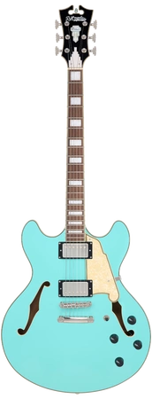 Zaokrąglony, podwójnie wycięty semi-hollow z pełnowymiarowym, ale lekkim blokiem centralnym, DC jest wybitną konstrukcją semi-hollow D'Angelico.