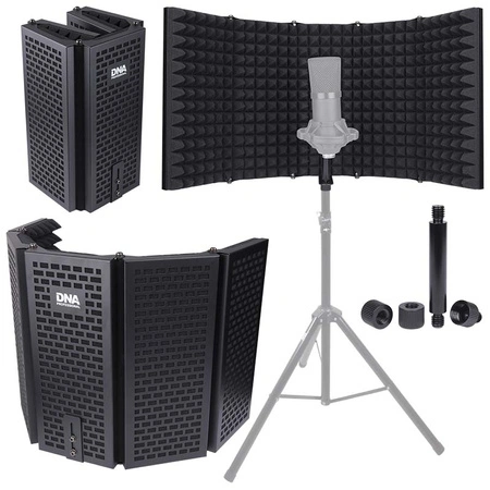 - DNA NS 3 ekran do mikrofonu kabina akustyczna filt – Dobry ekran akustyczny do mikrofonuDNA NS 3 to profesjonalny przenośny 5skrzydłowy ekran akustyczny do mikrofonu montowany na statywie, który doskonale sprawdza się podczas nagrywania wokalu, teksto