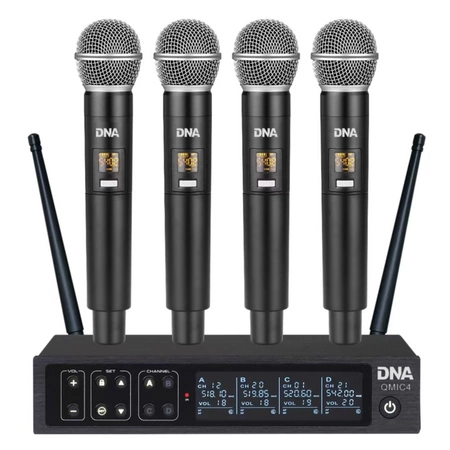 - DNA QMIC4 mikrofon bezprzewodowy 4x nadajnik doręc – Profesjonalny, bezprzewodowy system nagośnienia DNA QMIC4 doskonała jakość dźwiękuDNA QMIC4 to bezprzewodowy system mikrofonowy zapewniający wysoką jakość dźwięku w każdej sytuacji