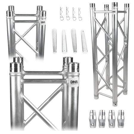 Solidna i lekka kratownica na owietlenieDNA T4 100nbsptonbspkwadratowa kratownicanbspo solidnej i wytrzymałej konstrukcji. Jest ona łatwa w montażu, stosunkowo lekka oraz mobilna. Tennbsptrawersnbspto odpowiednianbspkonstrukcjanbspprzeznaczona nanbspoświetleniowe efekty sceniczne, np.nbspminigłowice ruchome,nbspreflektory PARnbspczynbspefekty dyskotekowenbsp Jeśli szukasz dopełnienia do stanowiskanbspzespołu muzycznegonbsplubnbspDJa, tanbspkratownicanbspbędzie doskonałym wyborem.W zestawie kratownica oświetleniowa DNA T4 100, 4 sworznie, 4 trzpienie, 4 zawleczki.nbsp Trwałość konstrukcji, wygoda użytkowania oraz mobilnośćMasz dosyć dźwigania ciężkich i nieporęcznychnbspkonstrukcji nbspChcesz zachować najwyższąnbspstabilność, ale zależy Ci roewnież nanbspwygodzie użytkowanianbspinbspmobilności nbspTrawersnbspDNA T4 100nbspzostał zaprojektowany tak, aby zminimalizować jego wagę przy jednoczesnym zachowaniunbspsolidnościnbspinbspudźwigu aż do 1500 kgnbspnbsp Stabilny układ rur z lekkiego aluminiumKratownicanbspDNA T4 100nbspskłada się z dwoech rodzajoew rur wnbspukładzie kwadratowym. Rury głoewne o średnicach 50 mm i grubości 2 mm stanowią trzony konstrukcyjne, a rury wspornikoew o średnicy 20 mm i grubości 2 mm dopełniają całośćnbsptrawersu. Materiał konstrukcyjny stworzony z aluminium w kolorze srebrnym zapewnianbspestetykę oraz solidnośćnbspprzy zachowaniunbspniskiej waginbspnbspnbspKratownica oświetleniowa dla zespołu, DJa lub na małą scenęKratownica oświetleniowanbspDNA T4 100nbspto idealne rozwiązanie dlanbspzespołoew muzycznych, mobilnychnbspDJoewnbsporaznbspfirm eventowych. Doskonale nadaje się roewnież do dopełnienianbspwyposażenia scenicznegonbspw pubach i niewielkich klubach nbspSpecyfikacja techniczna Materiał aluminium 6061T6 Maksymalne obciążenie 1500 kg Rury głoewne Oslash 50 x 2 mm Rury wspornikoewnbsp Oslash 20 x 2 mm Połączenie sworznie, trzpienie i zawleczki Kolor srebrny Wymiary kratownicy 29 x 29 x 100 cm Wymiary opakowania 32 x 32 x 103 cm Waga netto 7,8 kg Waga brutto 8,3 kg