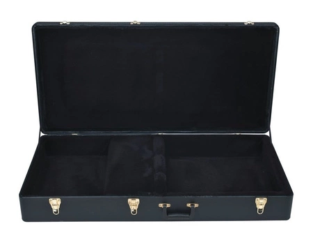 Najważniejsze cechy: - Korpus drewniany, mocny, płaskie wieko - Pozłacane zamknięcia, 3 zawiasy wieka - 4 metalowe stopki - Mocny, stabilny, plastikowy uchwyt - Czarne, skóropodobne obicie - Wyścielenie wewnątrz - czarny plusz - Zamykany wieczkiem przedział na akcesoria - Pasuje do OV553.946 i OV553.958