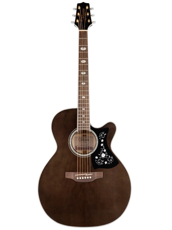 Gitara akustyczna Takamine GN75CE-TBK to fantastyczna gitara akustyczna posiadająca aksamitną równowagę w brzmieniu. Idealnie odnajduje się we współpracy z linią wokalną. Top wykonany z litego świerku, uzupełniony o boki i tył z płomienistego klonu gwarantują szeroki i jednocześnie ciepły dźwięk. Ten model wyróżnia się ze względu na wyjątkowy, brązowy kolor i kwiatowe zdobienia na łezce. Indywidualny charakter w wyglądzie podkreślony jest złotymi detalami. Pod kątem technicznym gitara wyposażona jest w niezawodny przedwzmacniacz TP-4TD, który z największą dokładnością pozwala zapanować nad elektronicznym brzmieniem gitary. Ten model to wspaniała propozycja dla świadomych swojego stylu muzyków.