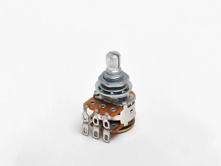 Podwójny potencjometr panorama z centralnym rasterem, idealny do płynnego przejścia między dwoma sygnałami z przetworników. W pozycji środkowej oba sygnały są przesyłane w 100% bez jakiejkolwiek utraty dźwięku lub głośności. Kompaktowa konstrukcja umożliwia łatwy montaż w wielu modelach gitar bez dodatkowych prac stolarskich. W zestawie znajduje się nakrętka i podkładka.