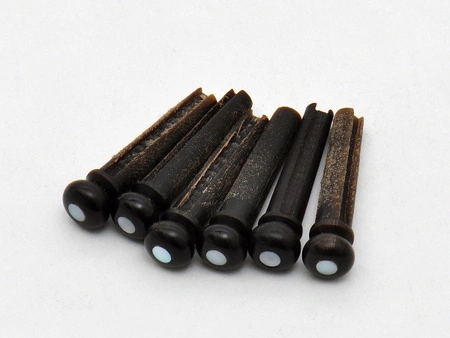 Kołki mostkowe wykonane z rogu bawoła zapewniają głośny, czysty i zrównoważony dźwięk, a także stabilne wsparcie dla strun. Ręcznie wykonane w Japonii, z elegancką inkrustacją z masy perłowej, sprzedawane w komplecie 6 sztuk. Wybór materiału kołków może znacząco wpłynąć na brzmienie gitary, co pozwala gitarzystom na dostosowanie dźwięku do swoich preferencji.