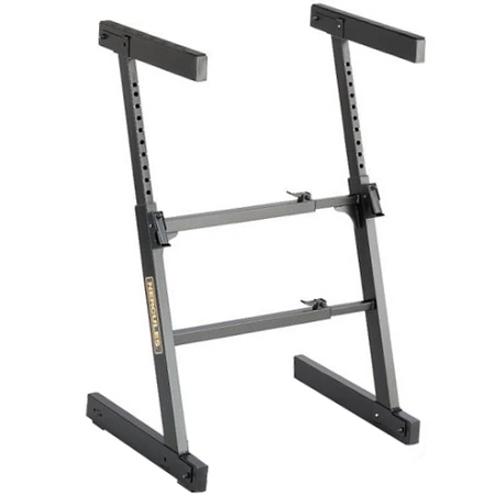 Profesjonalny statyw do instrumentów klawiszowych. Ramy teleskopowe w kształcie litery Z łączone dwiema poprzeczkami. Regulowany rozstaw podestu 51-85cm. Wysokości 60-93cm z systemem AutoLock, Regulacja gumowych podstawek, waga 8kg, obciążenie do 130kg, wymiary transpotrowe 68x54cm