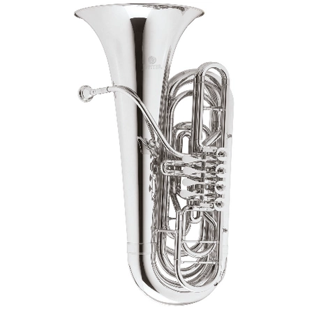 Strój: Bb. Otwór: 16,8 mm. Czara: Ø 365 mm, posrebrzana, mosiądz. Korpus: posrebrzany, mosiężny. Rura ustnikowa: posrebrzana, mosiężna, odłączana. Zawory: 4, zawory obrotowe. Sekcja tłoków: odłączana. Waga: 7,4 kg.. Wysokość: 83 cm. Oczka na pasek. Ustnik. Futerał JUPITER z kółkami JPKC82BA. Akcesoria.