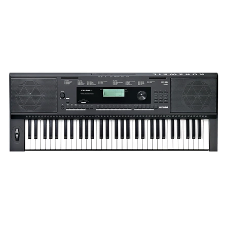 - Kurzweil KURZWEIL KP100 — Keyboard 5 oktaw, polifonia 128, presety [633, Triple Strike Piano, 32 user, GM], 220 auto akompaniamentów, pitchbend, MIDI song rekorder, ekran LCD, efekty, nagłośnienie 6W [2 głośniki], USB, wyjście słuchawkowe, pulpit, zasilac