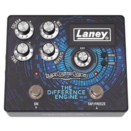 BCC The Difference Engine to Delay posiadający trzy rodzaje efektów opóźniających. Modelowanie klasycznego analogowego echa- maksymalny czas opóźnienia 1250 ms, cyfrowy delay- maksymalny czas opóźnienia 2500 ms, freeze oraz dynamiczny cyfrowy delay. Sterowanie: 2x FS (On, Tap/Freeze), Colour, Mix, Tone, Repeats, Edit, Buttons: Menu, Mode. Do zasilania wykorzystywany jest zasilacz 9V. Wejścia 2x Mono (L Mono/Stereo), 1x Expression, 1x MIDI IN. Wyjścia 2x Mono (L Mono/Stereo), 1x MIDI OUT. Wymiary: [HWD]: 59mm x 150mm x 121mm. Waga: 0,6kg.