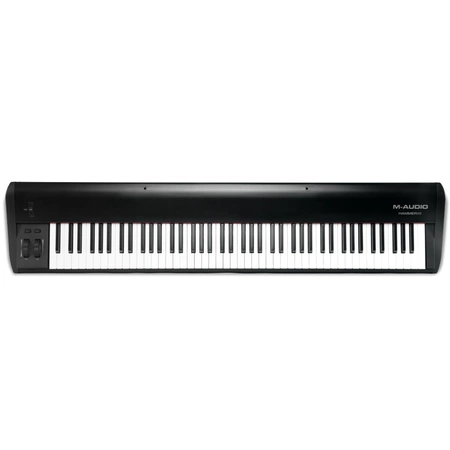 - M-Audio MA HAMMER 88 — Klawiatura fortepianowa 88 klawiszy, mechanizm młoteczkowy, MIDI Out, zasilanie USB lub zasilacz, Plug and Play, oprogramowanie AIR Mini Grand, DB-33 Tonewheel Organ, Velvet Electronic Piano, SONiVOX Eighty-Eight Ensemble oraz Ablet