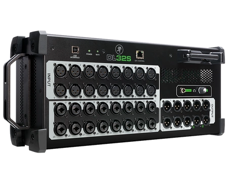 - Mackie MACKIE DL32S — Mackie DL32S, 32-kanałowy cyfrowy mikser bezprzewodowy, sterowanie przez Wi-Fi, 32 recallowane preampy Onyx+, 16 wejść XLR, 16 combo XLR/TRS, 10 wyjść XLR, AES3, 8 AUX SEND, 4 procesory FX, 32×32 USB 2.0, rack 4U, 447 × 185 × 147 mm,