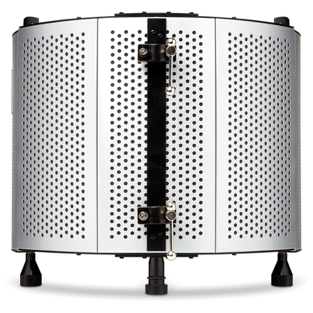 - Kieszonkowa Kabina Wokalowa, redukuje hałas otoczenia, 5 perforowanych metalowych paneli o wysokiej jakości [3 stacjonarne, 2 składane], mocowanie na stole lub do statywu mikrofonowego, profesjonalna pianka wygłuszająca EVA