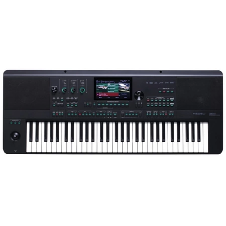 Medeli AKX10 to zaawansowany technologicznie keyboard z kolorowym wyświetlaczem dotykowym (7" TFT) z funkcją wyświetlania nut i wbudowanym rejestratorem/odtwarzaczem Audio. Instrument wyposażony został w takie technologie jak MARS (Medeli Advanced Realistic Synthesize), generator brzmieniowy powodujący że każda nuta AKX10 jest bezproblemowo zintegrowana z nieograniczoną liczbą warstw próbek i różnymi zmianami, zapewniając więcej szczegółów i większą autentyczność brzmień. W keyboardzie zastosowano także zaawansowany silnik stylów, który generuje wysokiej jakości style akompaniamentu. Po prostu zagraj kilka akordów na klawiaturze a Medeli AKX10 natychmiast zapewni pełne wrażenie zespołu. Teraz także nie musisz mieć odpowiedniej wiedzy z zakresu tworzenia własnych aranżacji ani odpowiedniego sprzętu. Keyboard ma wbudowany 16-ścieżkowy sekwencer, który pozwala na nagranie 1 ścieżki lub wszystkie 4 partie klawiatury, arpeggiatory i styl jednocześnie. Możesz zapisać swoje dzieło jako standardowy plik MIDI do dalszej edycji. Dzięki kreatorowi stylów możesz swobodnie edytować gotowe style lub tworzyć własne. Możesz nagrać każdą ścieżkę stylu, ustawić parametry odpowiadające za akord, zmienić wybór dźwięku oraz dostroić poziom głośności i panoramę ścieżek. Możesz nawet edytować parametry każdej nuty. Dodatkowo instrument posiada przypisywalne kontrolery: 2 pokrętła, 6 przycisków i 1 pedał. Możesz łatwo skonfigurować ich funkcje, wybierając spośród kilkudziesięciu opcji, w tym parametrów obwiedni, wartości efektu Reverb i Chorus. Możesz także wyznaczyć odpowiednie partie klawiatury i przesłać w formie komunikatu MIDI poprzez wyjście MIDI lub USB MIDI. Mocne nagłośnienie (2 x 25 W (woofer) + 2 x 15 W (tweeter)) dopełni możliwości Medeli AKX10.Cechy główne: Klawiatura 61 klawiszy dynamicznych z Touch Response, Mocne nagłośnienie 2 x 25 W (woofer) + 2 x 15 W (tweeter), Rejestrator/odtwarzacz Audio (WAV / MP3 / WMA), 7" wyświetlacz dotykowy, Wyświetlanie zapisów nutowych, Port USB (typ A) do podłączenia pamięci flash-USB (do 128 GB), Port USB (typ B) do pracy z komputerem.Specyfikacja: 61 klawiszy dynamicznych z Touch Response, Brzmienia: fabryczne 1100 (w tym 256 GM2 + 512 użytkownika), Style akompaniamentu: fabryczne: 280 + 512 użytkownika, Utwory: fabryczne: 90, użytkownika: 512, Demo: 2, Efekty: Reverb, Chorus, Master EQ, Arpeggio, Harmony, Chopper, Sekwencer: 512 utworów użytkownika (16 ścieżek), Polifonia: 256, Wyświetlacz: 7" dotykowy TFT, kolorowy, 800 x 480 pkt, Rejestrator/odtwarzacz audio: Odtwarzanie: WAV / MP3 / WMA, Zapis: 44.1 kHz / 16 bit, Biblioteka utworów demonstracyjnych: 90 presetów utworów, Wyświetlacz nut: SMF MIDI, Metronom: zakres tempa: 30 - 280, Tap Tempo, O.T.S.: tak, Głośniki: 2 x 15 W, 2 x 25 W, Pamięć zewnętrzna: pamięć flash USB do 32 GB, Zasilanie: 100 - 240 V, Akcesoria w komplecie: instrukcja PL, zasilacz, pulpit na nuty, Wymiary (wys. x szer. x głęb.): 160 x 970 x 390 mm, Waga: 9,4 kg.