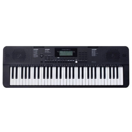 Keyboard Medeli MK 100 posiada: 61-klawiszy (klawiatura dynamiczna z 3 trybami ustawienia czułości). Wyświetlacz: LCD. Polifonia: 64 głosów. Brzmienia: 480. Style: 160. Wejście mikrofonowe: 6,3mm Jack. Wejście Aux In. Wejście na opcjonalny pedał sustain. Midi poprzez USB. Wspólne wyjście słuchawkowe i Main Out. Procesor DSP z efektami Reverb i Chorus. Muzyczna biblioteka z wgranymi 140 piosenkami i systemem lekcji. Możliwość zasilania bateriami 6xAA. Wymiary: 946 x 316 x 101mm. Waga: 4 kg. Instrument w komplecie dodatkowo posiada: dedykowany zasilacz, pulpit i instrukcję obsługi w języku polskim.