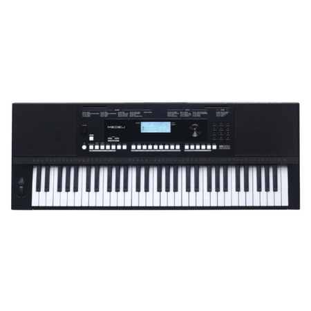 Keyboard Medeli MK 300 posiada: 61-klawiszy (klawiatura dynamiczna z3 trybami ustawienia czułości). Wyświetlacz: LCD. Polifonia: 128głosów. Brzmienia: 633. Style: 220. Tryb lekcji z 150 utworami.Utwory demonstracyjne: 8. Nagłośnienie 2x15W. Wejście naopcjonalny pedał sustain. Midi poprzez USB. Wspólne wyjściesłuchawkowe i Main Out. Rozbudowany procesor DSP z efektami: Reverb(10 typów) i Chorus (8 typów). Master EQ: 6 presetów. Sequencer:10 utworów użytkownika (1 melodia + 1 akompaniament). BankiPerformance Memory 4x8. Opcje Q.S./OTS (one touch settings), a takżefunkcje takie jak Transpose, Harmony, Metronom, Octave i skrót dotrybu pianina - PIANO MODE. Zasilanie: DC 12V z opcją zasilaniabateriami 6xAA. Wymiary: 956 x 360 x 133 mm. Waga: 5.3 kg. Instrumentw komplecie posiada: dedykowany zasilacz, pulpit i instrukcjęobsługi w języku polskim.