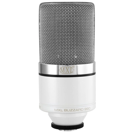 - MXL MXL 990 BLIZZARD — Mikrofon pojemnościowy z dużą membraną, pasmo przenoszenia 30Hz20kHz, kardioidalny, membrana pokryta złotem, wbudowane diody LED, wymaga phantom 48V, w zestawie adapter do statywu
