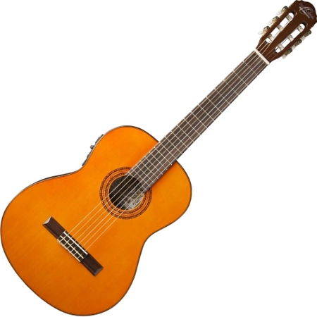 Gitara elektro-klasyczna 6-cio strunowa. Rozmiar 4/4. Płyta wierzchnia: selekcjonowany świerk, boki i tył catalpa. Gryf mahoniowy, podstrunnica i mostek: alternative engineered wood. Pręt do regulacji gryfu. Elektronika 3-zakresowa EQ 505 R. Klucze otwarte pozłacane. Wykończenie: wysoki połysk. Kolor: naturalny.