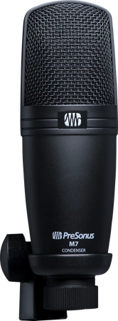 - PreSonus PRE M7 — Wielkomembranowy mikrofon pojemnościowy, idealny do wokali, gitar i podcastów, charakterystyka kardioidalna, pasmo przenoszenia 20Hz - 18kHz, max SPL 134dB, w zestawie kabel mikrofonowy XLR, uchwyt sztywny i walizka