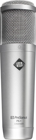 - PreSonus PRE PX-1 — Wielkomembranowy mikrofon pojemnościowy, idealny do wokali, gitar, podcastów, charakterystyka kardioidalna, kapsuła 25mm pokryta złotem, czułość 25mV/Pa, pasmo przenoszenia 20Hz - 18kHz, SPL 135dB, w zestawie uchwyt sztywny i walizka