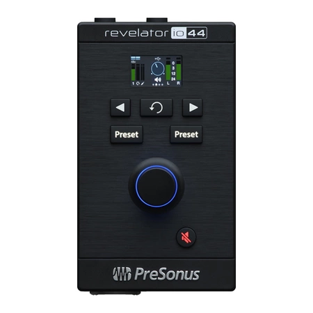 - PreSonus PRE REVELATOR IO44 — Mobilny interfejs streamingowy USB-C z efektami[EQ,Kompresor,Gate,Limiter,Reverb],presety,wejście Mic/Ins[XLR/TS],preamp XMAX-L,wejście Line Stereo[TRS 1/8 in.],gniazdo słuchawek z mikrofonem[TRRS 1/8in.],2 wyjścia audio TRS,