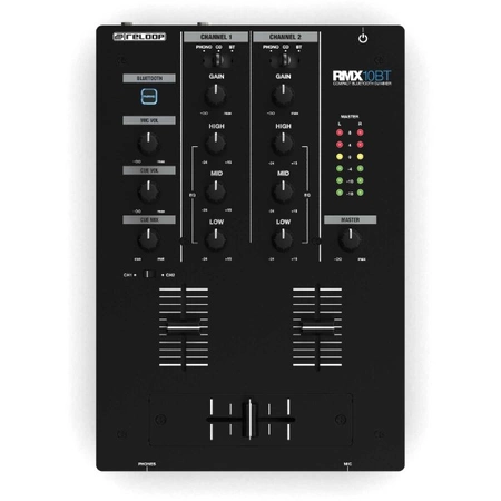 Mikser 2-kanałowy z funkcją Bluetooth [1 i 2], 3-zakresowe EQ, wejścia RCA PHONO/ CD [1 i 2], mikrofonowe TS 6.3mm, wyjścia Master RCA, RCA Rec