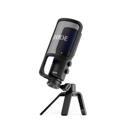 - Rode RODE NTUSB+ — Profesjonalny mikrofon pojemnościowy USB-C, ultra-niski poziom szumów, preamp Revolution, wyjście słuchawkowe [zero-latency], efekty APHEX, w zestawie pop-filtr, uchwyt sztywny, statyw biurkowy, kabel USB-C SC29, kompatybilny PC, Mac, i