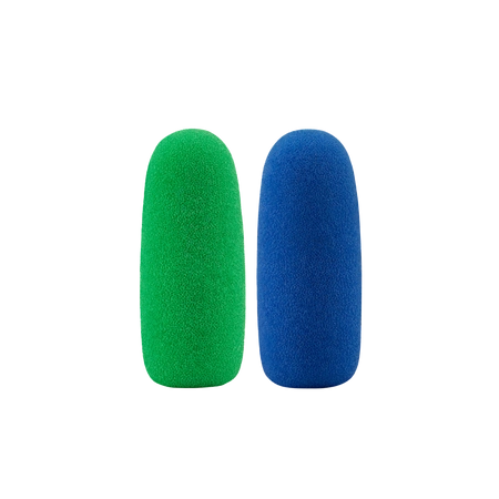 Zestaw 2 osłon przeciwwietrznych do mikrofonu VideoMic NTG w kolorze zielonym oraz niebieskim, niewidoczne przy edycji w studiu telewizyjnym