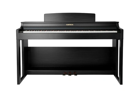 Samick DP-300 to instrument, który przyciąga uwagę swoim wyjątkowym designem. Wysokiej jakości wykończenie, podwójne nogi statywu oraz lekko przechylony front jednostki centralnej instrumentu sprawiają, że pianino wygląda bardzo nowocześnie. Z pewnością będzie idealnie komponował się w nie jednym salonie bądź jadalni.
