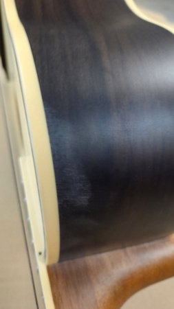 Instrument sprawny, posiada wady lakiernicze. Konieczna wymiana strun i regulacja.
