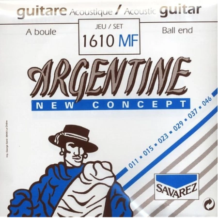 ARGENTINE - zestaw strun do gitary akustycznej. Grubości: 11-15-23-29-37-44, E i H gładkie, pozostałe owijane, zakończone kulkami. Naciąg Standard XLight.