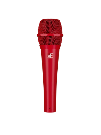 - sE Electronics SE V7 RED — Mikrofon dynamiczny superkardioidalny do zastosowań scenicznych, opatentowany wewnętrzny system shockmount i osłona przeciwwietrzna izolują od przydźwięków, w zestawie uchwyt sztywny, adapter do statywu, osłona przeciwwietrzna o
