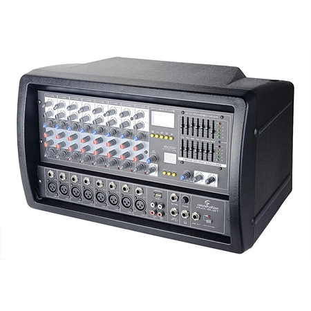 - 8-kanałowy mikser z 2-pasmowym equalizerem; wysyłaniem sygnału FX do pętli efektów; regulacją wzmocnienia, panoramy i poziomu dla każdego kanału