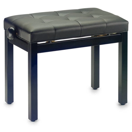 Siedzisko o wymiarach 55 × 33 cm pokryte zostało wysokiej jakości czarnym winylem, co zapewnia komfort podczas gry oraz łatwość czyszczenia. Dzięki regulacji wysokości (śruba rzymska) w zakresie 49–56 cm, ławę można dopasować do indywidualnych potrzeb każdego muzyka.