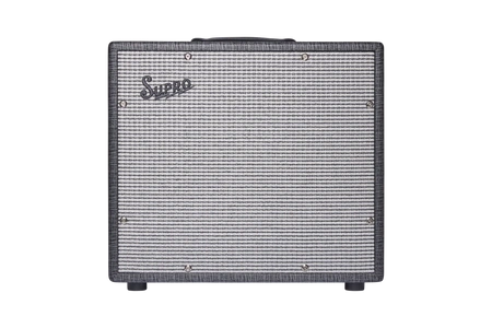 Niestandardowy czarny tolex Rhino Hide z białym ściągaczem i srebrno-czarna tkanina grillowa Supro z subtelnym połyskiem zapewniają doskonałe wyczucie i dożywotnią trwałość.