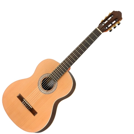 Gitara klasyczna 6-strunowa. Rozmiar: 4/4. STANDARD 400 Nylon. Płyta wierzchnia: lity cedr (Solid Western Red Cedar). Boki i tył gitary: palisander. Gryf: mahoń. Podstrunnica: palisander. Siodełko: kość. Wzmocnienie gryfu: Reinforcement: Glass Fibre Reinforcement. Szerokość na pierwszym progu: 2–1/16" (52 mm). Binding: klon. Maszynki chromowane: Die-Cast. Struny: Hannabach Coated. Pokrowiec: WALDEN Gig Bag. Kolor naturalny. Wykończenie: Satin.