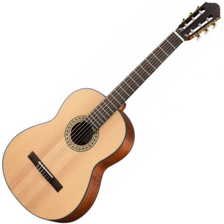 Gitara elektroklasycznaKształt: Klasyczny 4/4Płyta rezonansowa: Lity świerk SitkaBoki & tył: MahońGryf: Mahoń wzmocniony włóknem szklanym, dwustronny pręt regulującyPodstrunnica & mostek: PalisanderSiodełko & prożek mostka: 'GRAPH TECH NuBone' Rozeta: DrewnoOżyłkowanie: Czarne tworzywo ABSKlucze: Złote z białymi główkamiElektronika: 'WALDEN Active' EQ & tunerWykończenie: Matowe z otwartymi porami, lakier utwardzany UVSzerokość siodełka: 5,2 cm Szerokość górna: 28,58 cm Szerokość w zwężeniu: 24,13 cm Szerokość dolna: 37,47 cm Głębokość: 9,84 cm Długość korpusu: 48,85 cmMenzura: 65 cm (25.6") W komplecie pokrowiec WALDEN